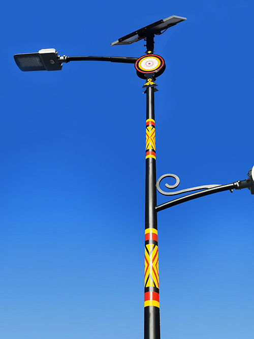 黑龍江金太陽光電有限公司為大力推廣寒地太陽能路燈在東北地區的普及應用,為新時代的新農村設計了多款民族風情太陽能路燈,在保證光照度的情況下,在款式上爭新創優,為農村的色彩增添一道靚麗的風景線。使用金太陽光電生產的寒地太陽能景觀路燈,可以耐低溫、耐冰雪、光照時間長,使用壽命長等特點。